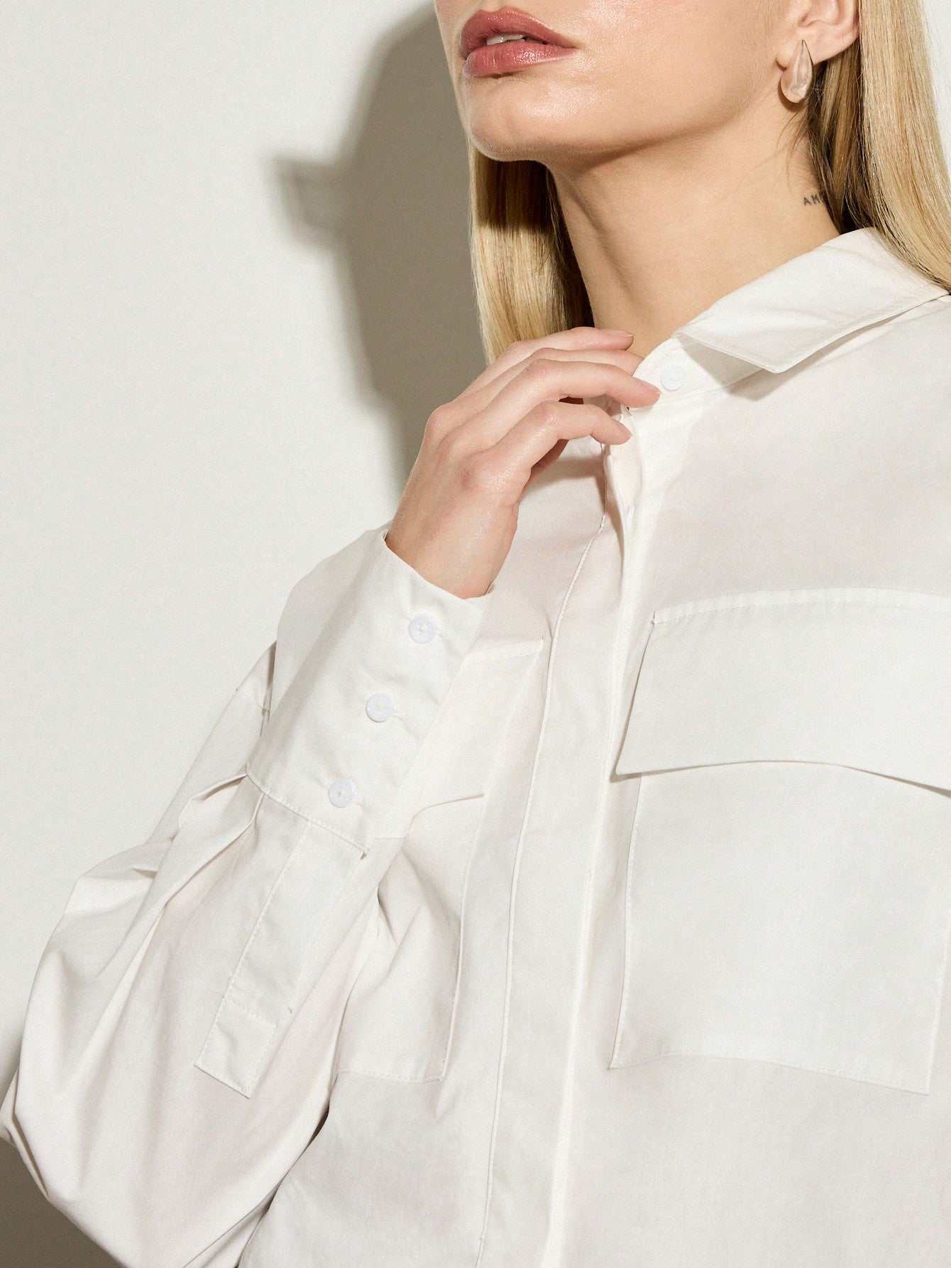 Esta camisa blanca de estilo casual es una pieza moderna y versátil. Su diseño holgado con hombros caídos y corte asimétrico le da un toque relajado y sofisticado. Cuenta con un cuello clásico tipo camisa, cierre de botones en la parte frontal y detalles de cremallera y bolsillo, que aportan funcionalidad y estilo. Confeccionada en 100% algodón, su tejido transpirable garantiza comodidad durante todo el día. Ideal para combinar con jeans, faldas o pantalones de tiro alto para un look fresco y actual. Fácil de cuidar, se puede lavar a máquina o limpiar en seco.