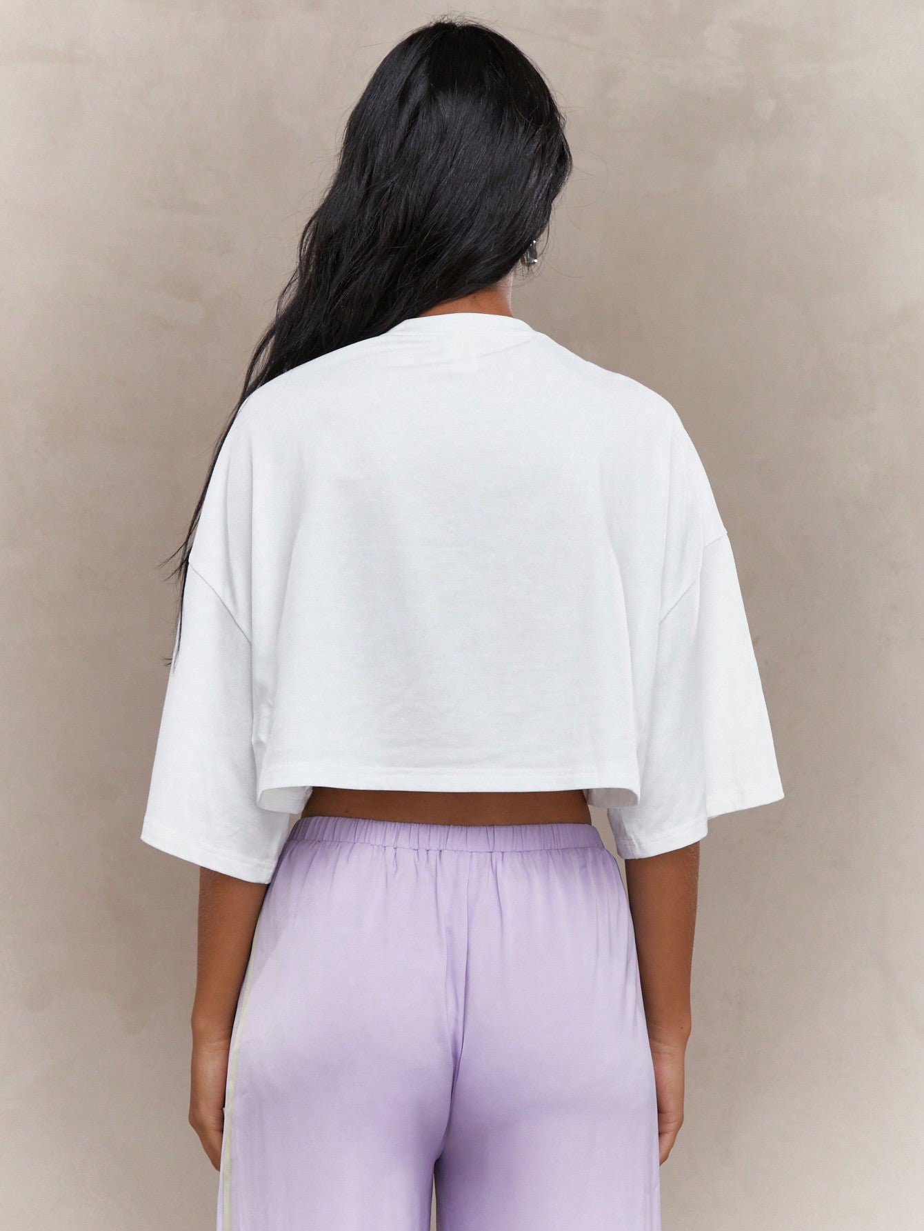 Esta moderna camiseta cropped en color blanco es perfecta para un look casual y fresco. Su diseño de hombros caídos y ajuste holgado brinda comodidad y un estilo relajado. Con un suave estampado de plantas, aporta un toque natural y versátil a cualquier outfit. Fabricada en un tejido de punto con elasticidad media, combina poliéster, algodón y elastano para garantizar suavidad y flexibilidad. Su cuello redondo clásico y mangas cortas la hacen ideal para el día a día. Fácil de cuidar, se puede lavar a máquina. Perfecta para combinar con jeans, shorts o faldas para un look desenfadado y moderno.
