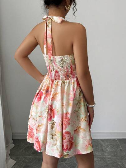 ¡Luce fresca y vibrante con este vestido mini de estilo boho! Con un escote halter, espalda descubierta y detalles de nudo, es la elección perfecta para los días cálidos. Su patrón floral multicolor y corte acampanado te brindan un look único y lleno de energía. Además, su ajuste slim fit y la cintura alta resaltan tu figura, mientras que el tejido suave y cómodo garantiza comodidad durante todo el día. ¡Ideal para un día soleado o una noche de verano con estilo!