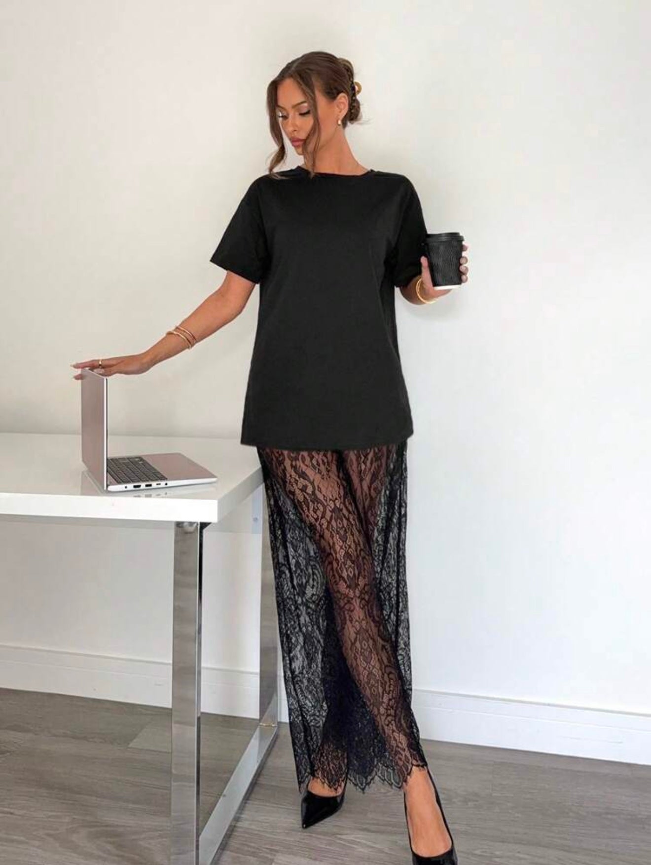 Este conjunto es la combinación perfecta de comodidad y estilo. Ideal para ocasiones como salidas nocturnas o eventos formales, ofrece un look versátil y moderno. Incluye una blusa tipo tee con mangas cortas y cuello redondo, acompañada de un pantalón larga de encaje que aporta un toque elegante.