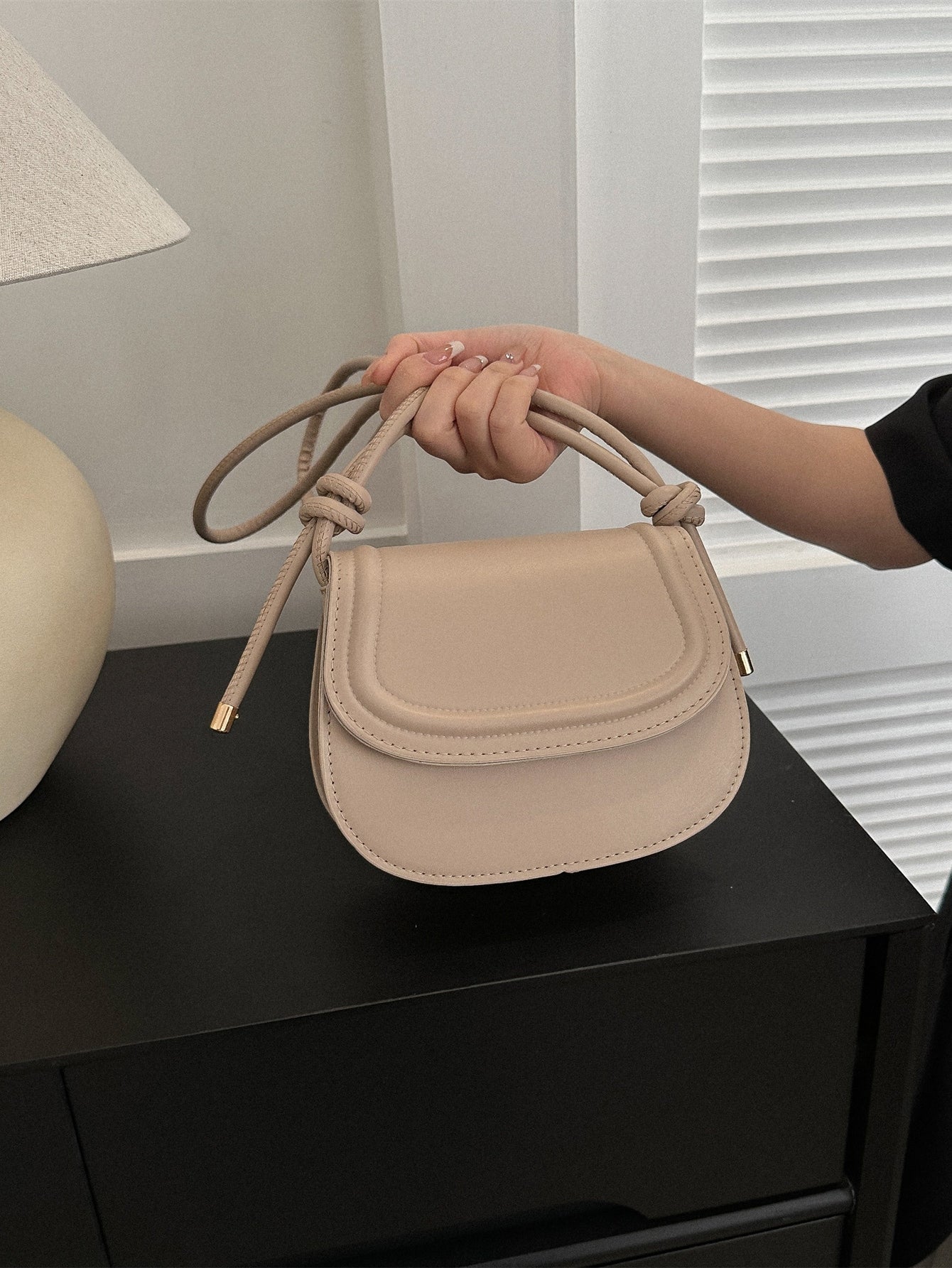 Bolso tipo saddle de estilo elegante en color albaricoque, perfecto para complementar cualquier outfit con un toque sofisticado. Su diseño mini lo convierte en el accesorio ideal para llevar lo esencial, mientras que el cierre de solapa añade un detalle clásico y funcional. Fabricado en cuero sintético (PU) con revestimiento 100% poliuretano, ofrece un acabado suave y duradero. La correa ajustable permite adaptarlo a diferentes largos, brindando comodidad y versatilidad para usarlo al hombro o cruzado. Un bolso minimalista y chic que eleva tu estilo al instante.