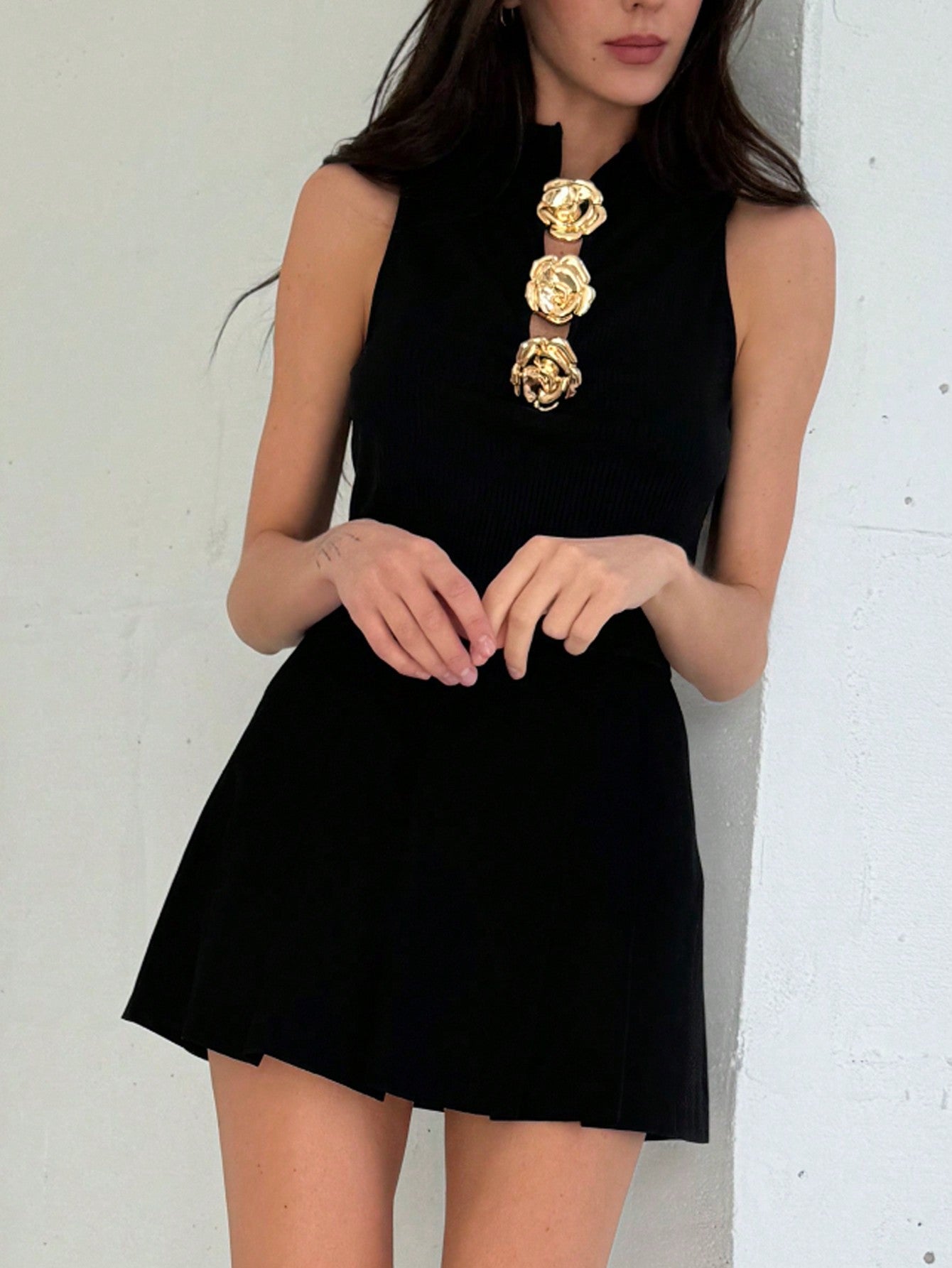 Top tipo tank de estilo casual en color negro con diseño liso. Presenta un elegante cuello alto y un corte ajustado que realza la silueta. Su largo regular y dobladillo clásico lo hacen una prenda versátil y fácil de combinar. Confeccionado en un tejido de alta elasticidad con una composición de 93% poliéster y 7% elastano, ofrece comodidad y un ajuste favorecedor. Ideal para un look moderno y minimalista. Se recomienda lavado a mano y evitar la limpieza en seco.
