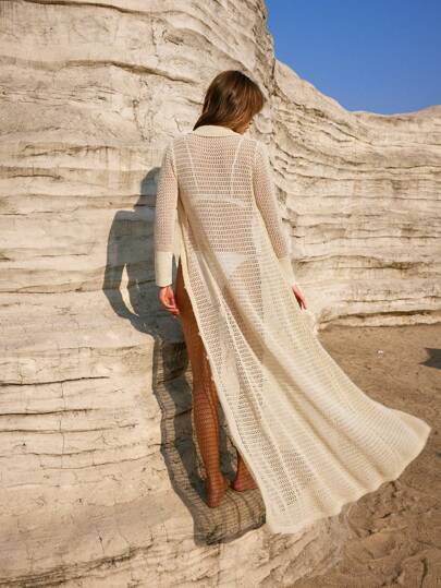 Este vestido largo en tono crema es una prenda elegante y moderna, perfecta para ocasiones especiales. Con un diseño semitransparente y una abertura en el muslo que añade un toque atrevido, este vestido combina sofisticación con sensualidad. Su escote redondo y las mangas largas lo hacen ideal para diversas estaciones, mientras que el ajuste regular y el tejido de punto, ligeramente elástico, brindan comodidad y flexibilidad. Confeccionado en 100% poliéster, el vestido no tiene forro, lo que resalta su estilo ligero y fluido. El detalle de botones en la parte delantera le da un toque clásico y chic. Es fácil de cuidar, recomendándose lavar a mano o llevar a limpieza profesional para mantener su calidad. ¡Un vestido único para quienes buscan destacar con estilo!